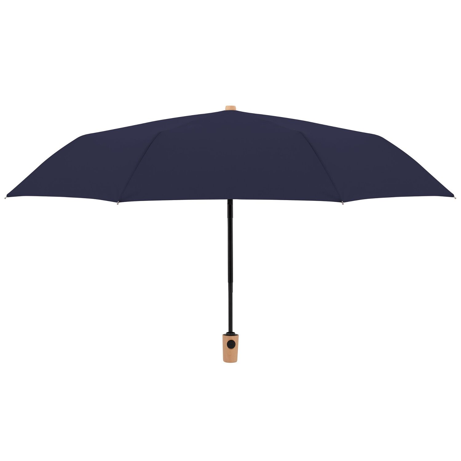 Een superparaplu die in een handomdraai opent en sluit. Ligt comfortabel in de hand dankzij het houten handvat.