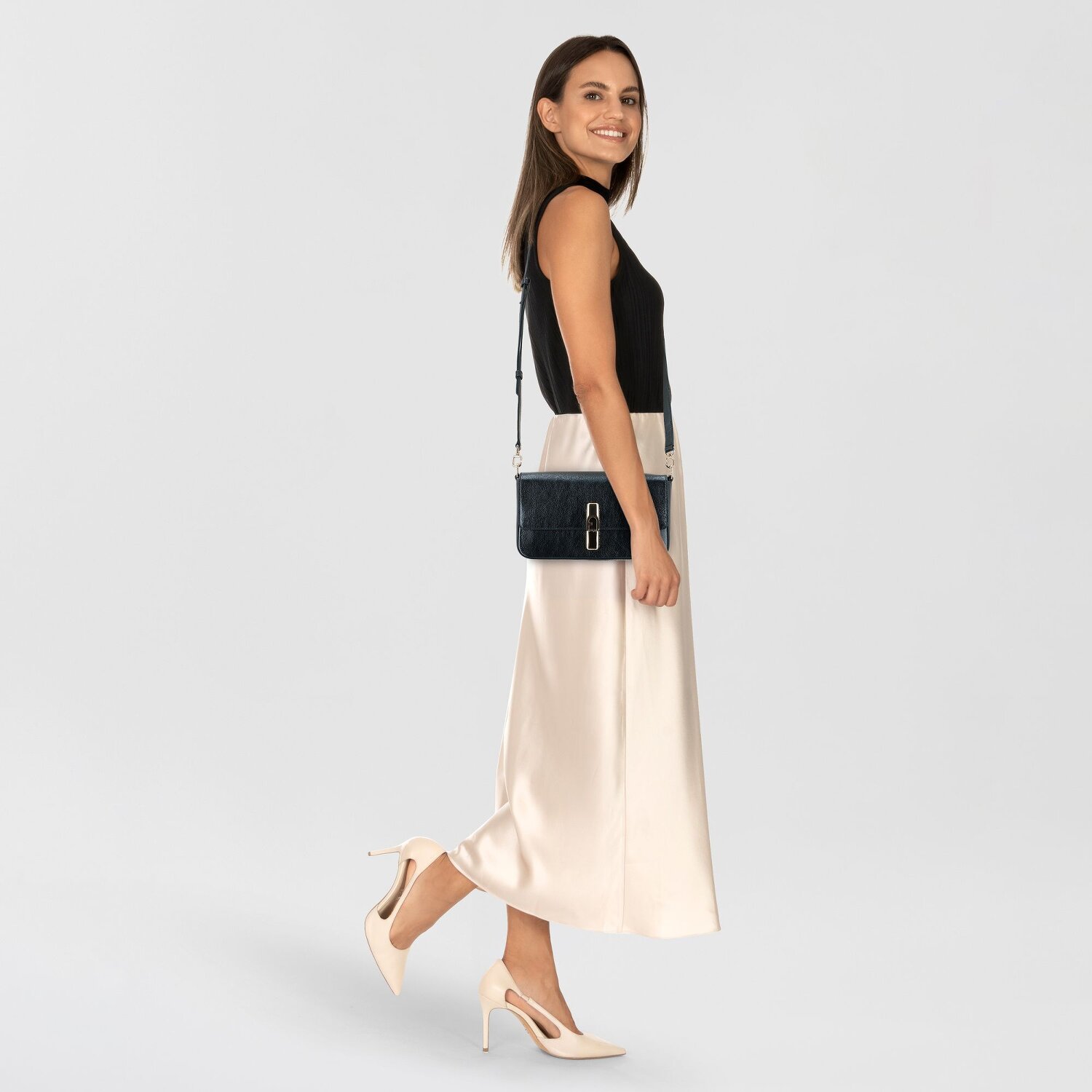 Ontdek de stijlvolle Iride damesschoudertas van Furla. De elegante lijnen en het hoogwaardige leer getuigen van stijl en raffinement, terwijl het praktische ritsvak en de eenvoudige gespsluiting gemak bieden in het dagelijks leven. De verstelbare en afneembare schouderriem en de extra lange hoofdband maken het gemakkelijk om de tas op verschillende manieren te dragen. Ben je op zoek naar een tas die extravagantie en functionaliteit combineert? Dan is deze Furla Iride je perfecte metgezel. Leun achterover, geniet van de sensuele charme van het leer en klik op "In winkelmand"!