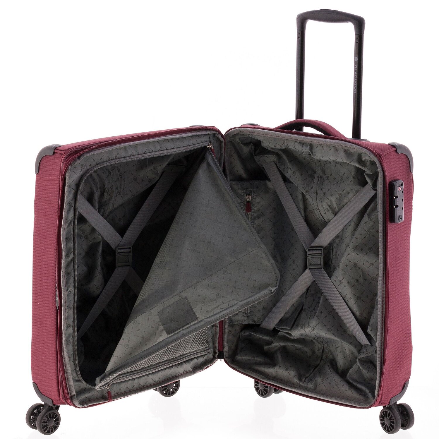- Specificaties: Uitschuifbare handvat, Uitbreidbaar, Ritsvak, Kledingvak, Inpakriemen, Gaasvak, Buitenzak(ken)