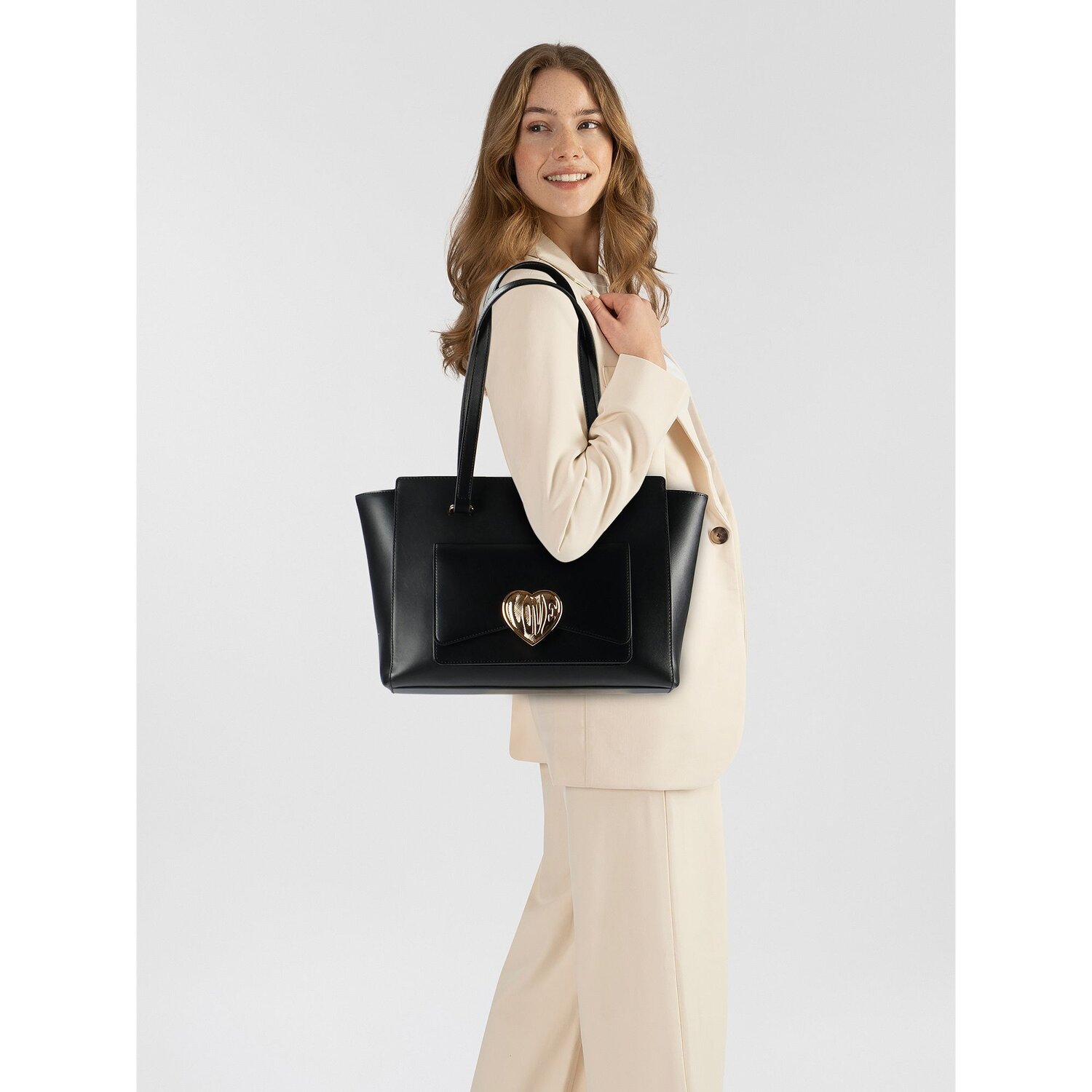 Love Moschino Victory Heart Shopper Tas Leer 34 cm