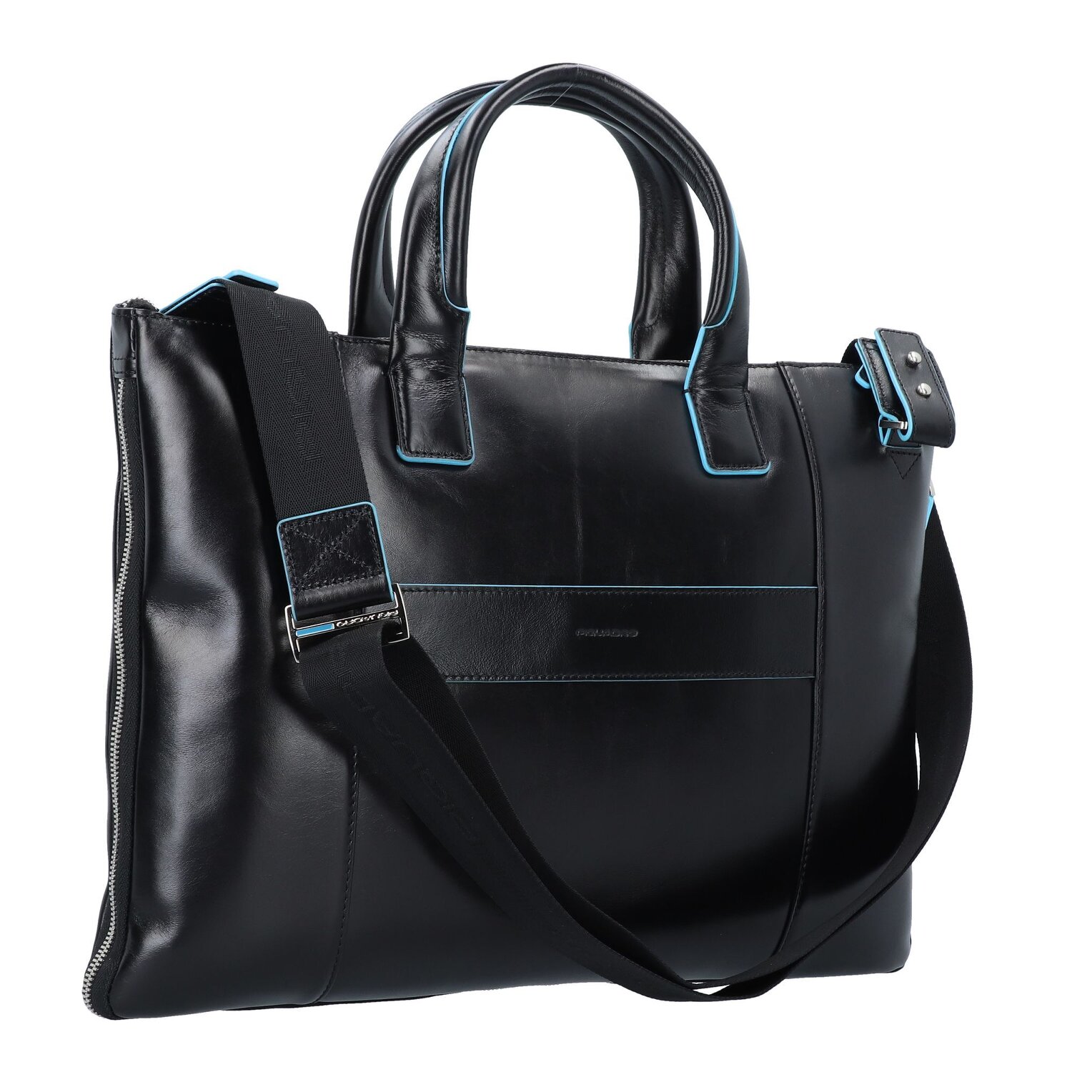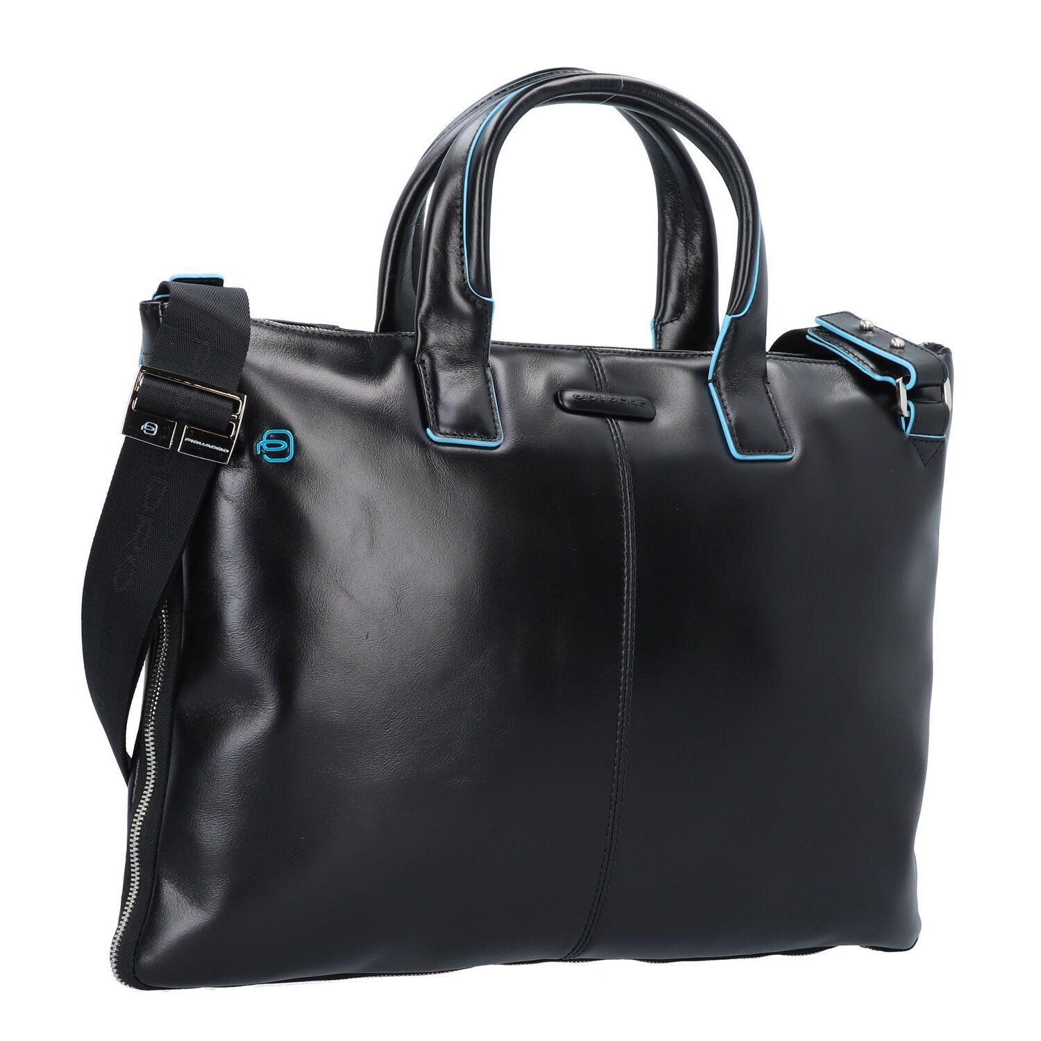 Piquadro Blauwe vierkante aktetas Leer 42 cm Laptop compartiment
