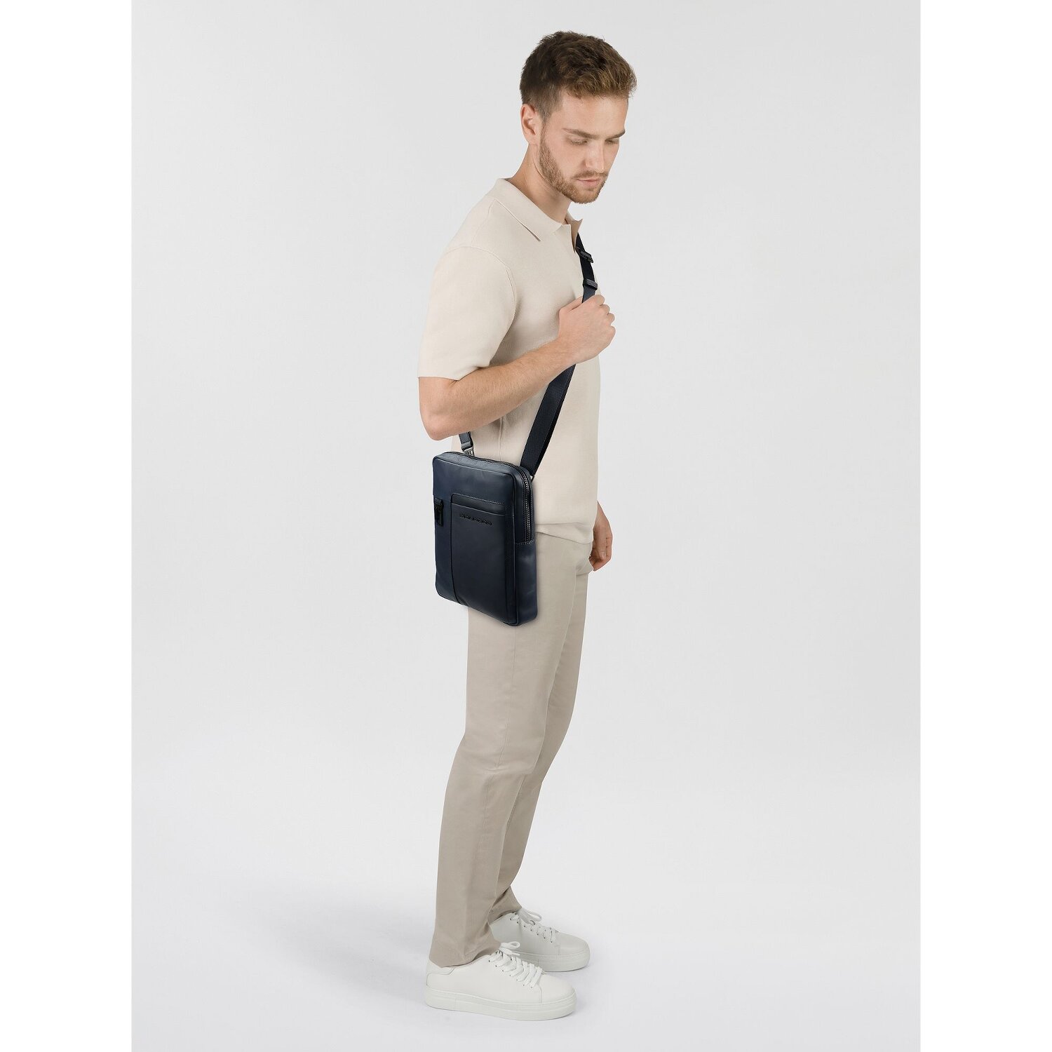 Piquadro Schoudertas Leer 27 cm