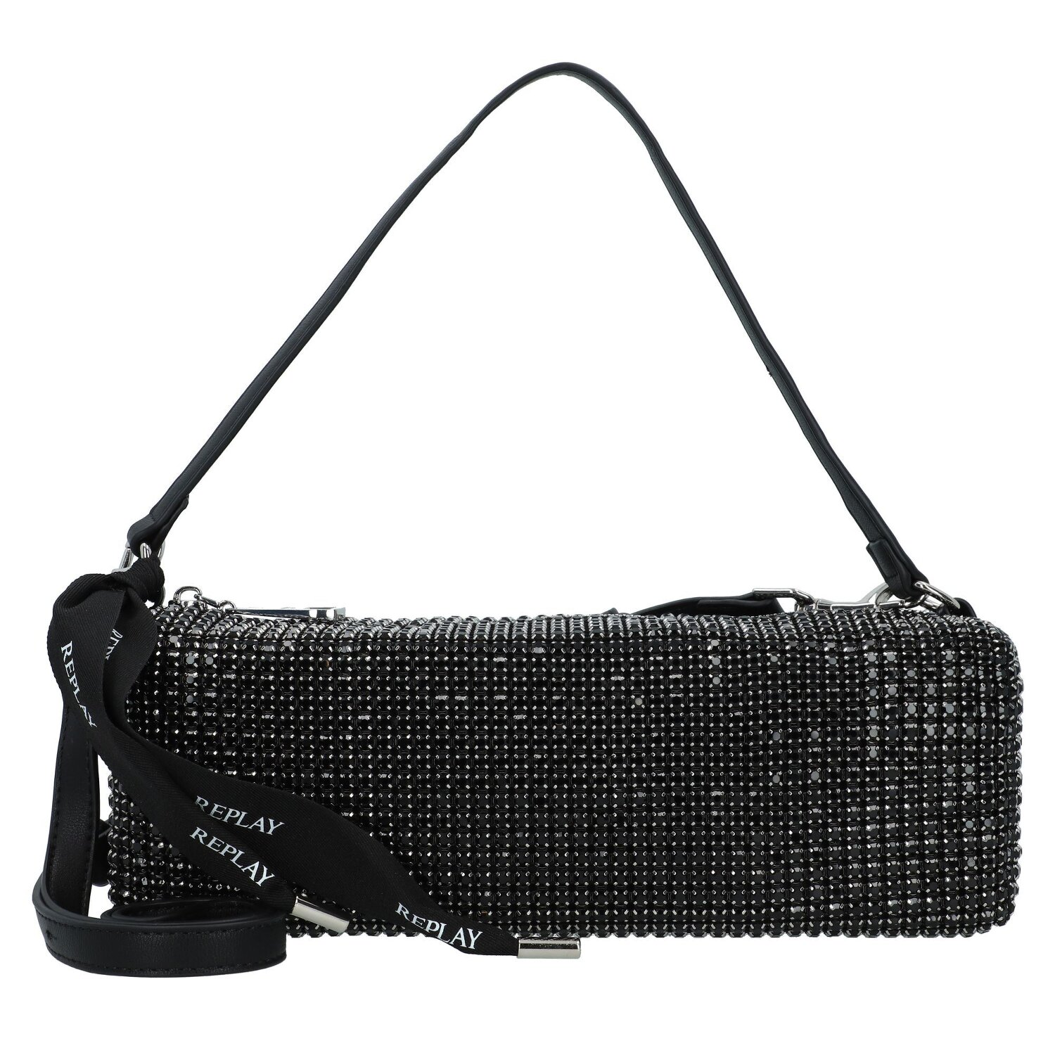 Spannende schoudertas van Replay. Het ruime hoofdvak biedt genoeg opbergruimte voor alles wat een vrouw nodig kan hebben tijdens een lange avond en meer. Het hoofdvak wordt aangevuld met een ritsvak en een insteekvak voor meer overzicht. De afneembare schouderriem geeft de tas een bepaalde variatie waardoor het een prachtig accessoire is. De strassteentjes op het oppervlak van de tas geven de tas net dat beetje extra en zijn een echte blikvanger op elk feest. Modern, spannend design ontmoet praktisch design en samen vormen ze de ideale avondmetgezel voor speciale gelegenheden.